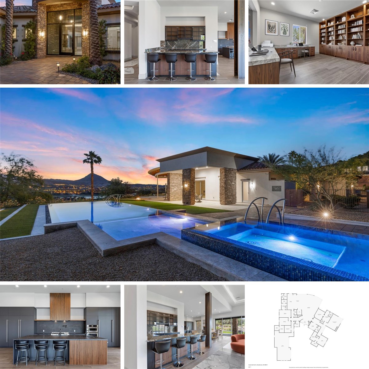 This is a one-of-a-kind desert-modern masterpiece, perched on a rare 1.35-acre elevated lot behind double guard gates in Lake Las Vegas. This single-story residence lives like a private resort, offering unobstructed lake, mountain, and golf course views from its hilltop setting.