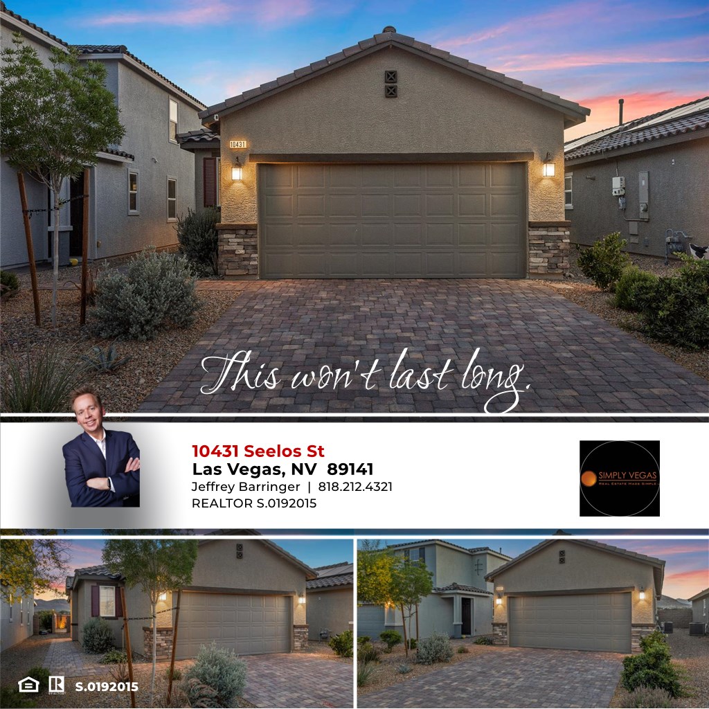 Welcome to this upgraded home in the sought-after Southwest. This single-story gem features 2 bedrooms, 2 baths, a den, and custom 9’ ceilings throughout. No rear neighbors, as the home backs up to protected Clark County parkland. This house was bought new and they invested in almost $50,000 in upgrades! Enjoy a spacious living area with custom South Bay Clamshell flooring, custom high-end navy cabinetry, and all matching Whirlpool appliances including a gas stove. The kitchen, den, and open layout create a perfect space for living and entertaining. The finished backyard offers low-maintenance landscaping with succulents and a prime, unobstructed west-facing view for nightly sunsets. Security front door included. Ring cameras in both the front & back of the home. Convenient location near shopping, dining, and freeway access. Don’t miss this turn-key opportunity with style, privacy, and comfort in one of Las Vegas’ most desirable areas.