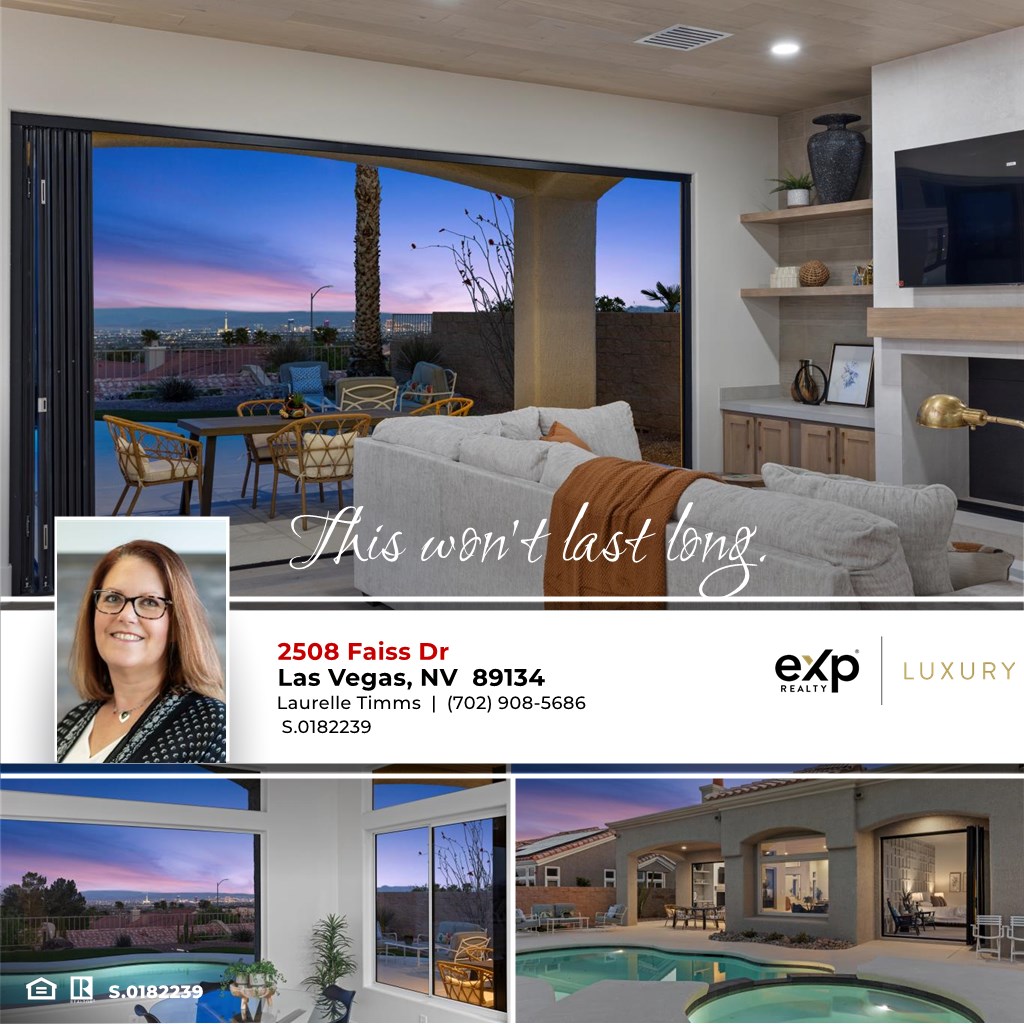 Premium design meets the ultimate 55+ lifestyle in this stunning Sun City Summerlin home. Enjoy iconic Strip views from the primary suite, kitchen, family room & backyard, while the front of the home captures breathtaking desert sunsets. Every detail has been thoughtfully curated, from the modern water-vapor fireplace & premium white oak engineered hardwood floors to custom wood-accent ceilings & designer walls that elevate the style throughout. At the heart of the home, the chef’s kitchen is a true showpiece with a spacious island, sleek quartz counters & open layout—perfect for entertaining or relaxing. A 15-ft panoramic sliding door of individual panels creates seamless indoor/outdoor living with twinkling city lights as your backdrop. Sun City Summerlin offers world-class amenities: 4 clubhouses, 3 golf courses, fitness center, pools, pickleball, social clubs & more. With shopping, dining & freeway access nearby, this home delivers the best of Las Vegas living.