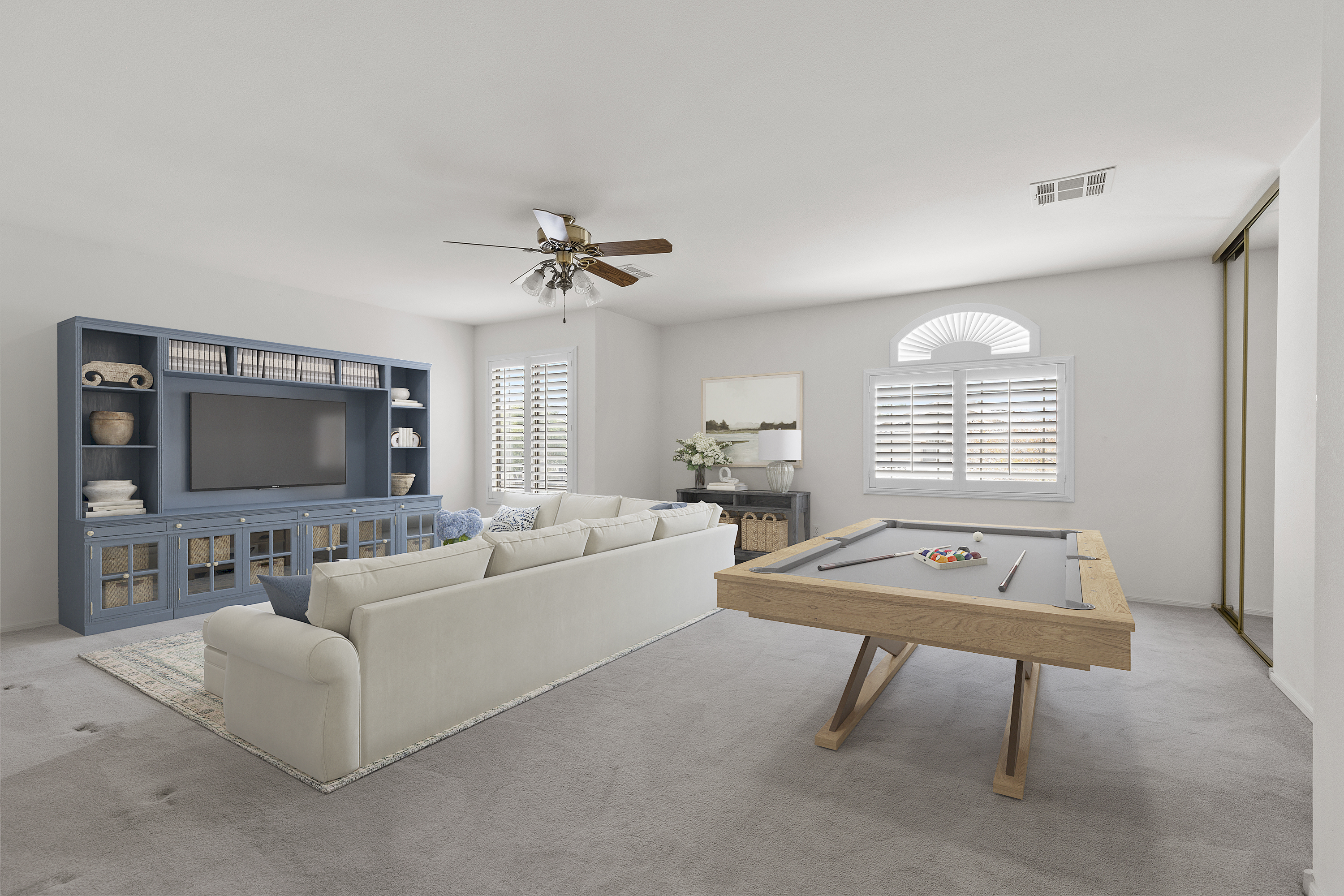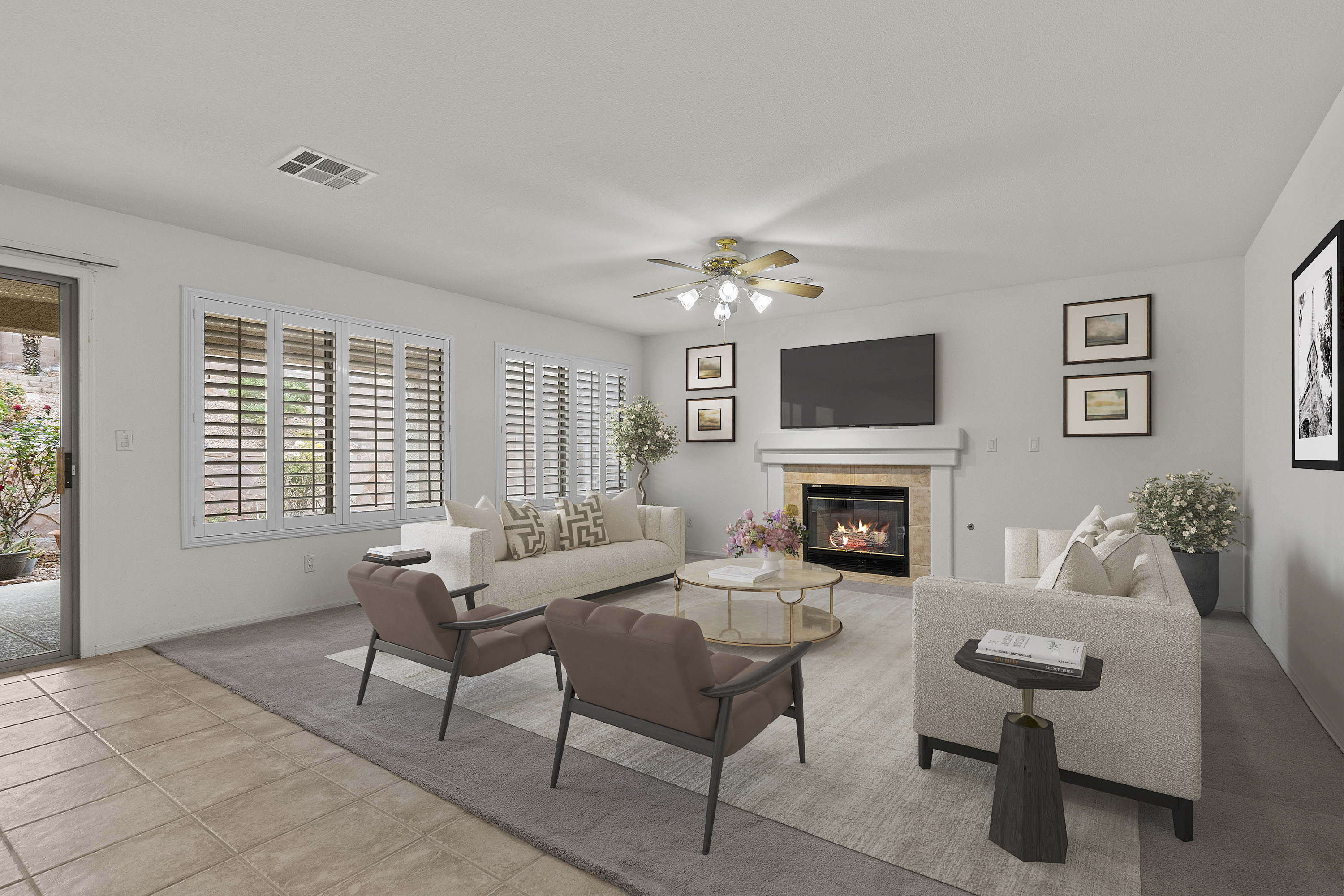 WELCOME HOME to this stately Henderson home which offers tons of space and value! The functional floorplan allows for smooth flow through casual and formal living and dining areas, which is perfect for entertaining large or intimate gatherings. The kitchen offers stainless steel appliances including double oven, ample cabinets and counter space, plus island and pantry. Downstairs provides a bedroom with private bathroom, plus front den which could serve as Bedroom 6, perfect for multi-gen needs. The grand staircase leads to four very spacious bedrooms including the primary bedroom suite with expansive balcony, bathroom with separate tub/shower, and large walk-in closet. You will enjoy the generously sized backyard with covered patio and low-maintenance terraced landscaping- a wonderful outdoor retreat. All this, with OWNED SOLAR, 3-car garage (EV charger outlet), and in a fantastic location with convenient access to shopping, dining, freeway, and more!