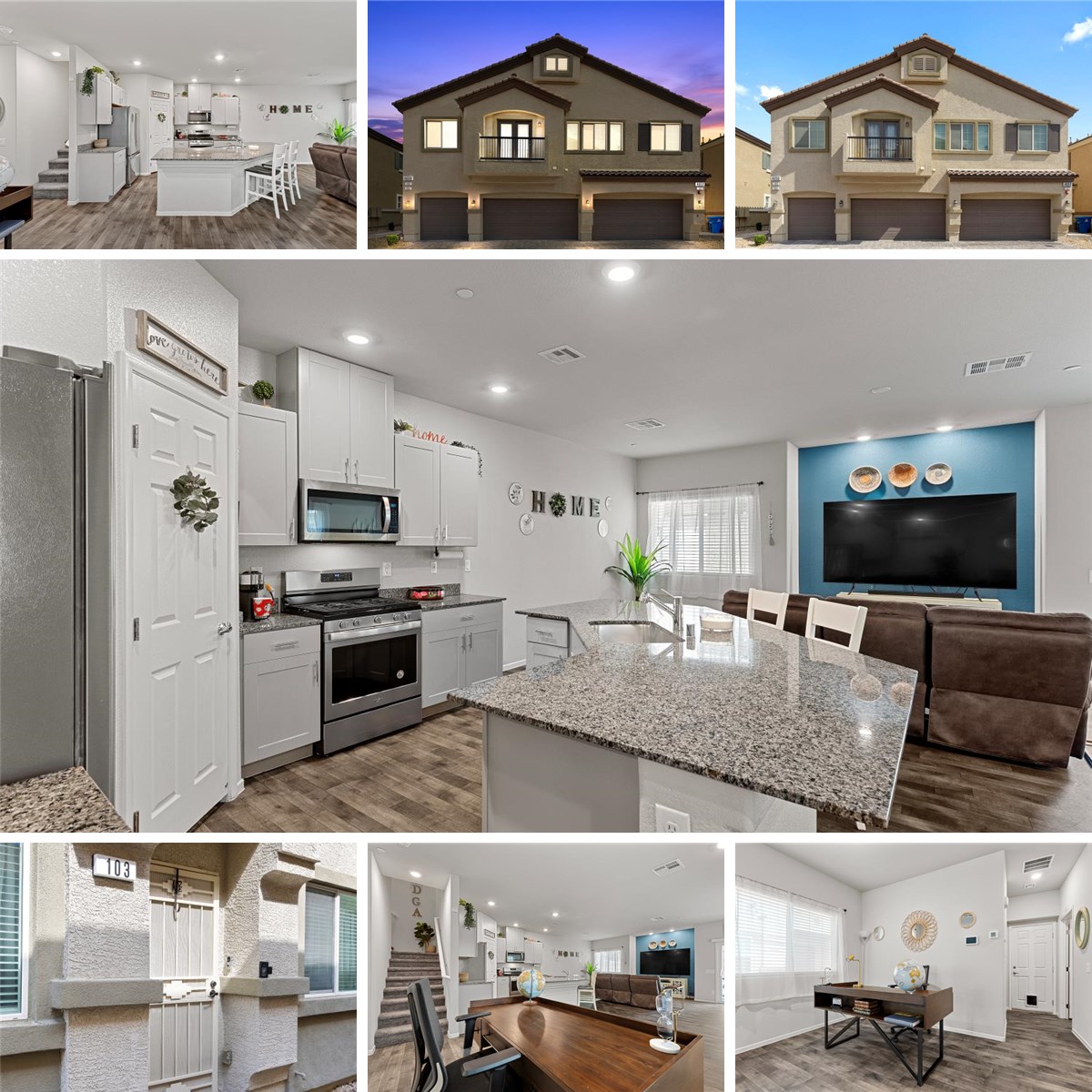 Welcome Home! From the moment you step inside, this beautifully designed townhome greets you with warmth and style. The vinyl plank flooring and soothing wall colors create a calm, modern ambiance throughout the main floor. The heart of the home is a spacious kitchen featuring a massive island with seating, granite countertops, stainless steel appliances, walk-in pantry, and plenty of room to cook, gather, and entertain. The open layout includes a large family room and a versatile dining area—ideal for meals or as your perfect at-home workspace. Upstairs, you'll find two secondary bedrooms and a generous primary suite complete with a walk-in closet and a dual-sink bathroom for added convenience. Step outside to enjoy a low-maintenance backyard with synthetic grass and pavers—perfect for relaxing or entertaining under the stars. This is more than a house—it’s the place you’ll want to call home.