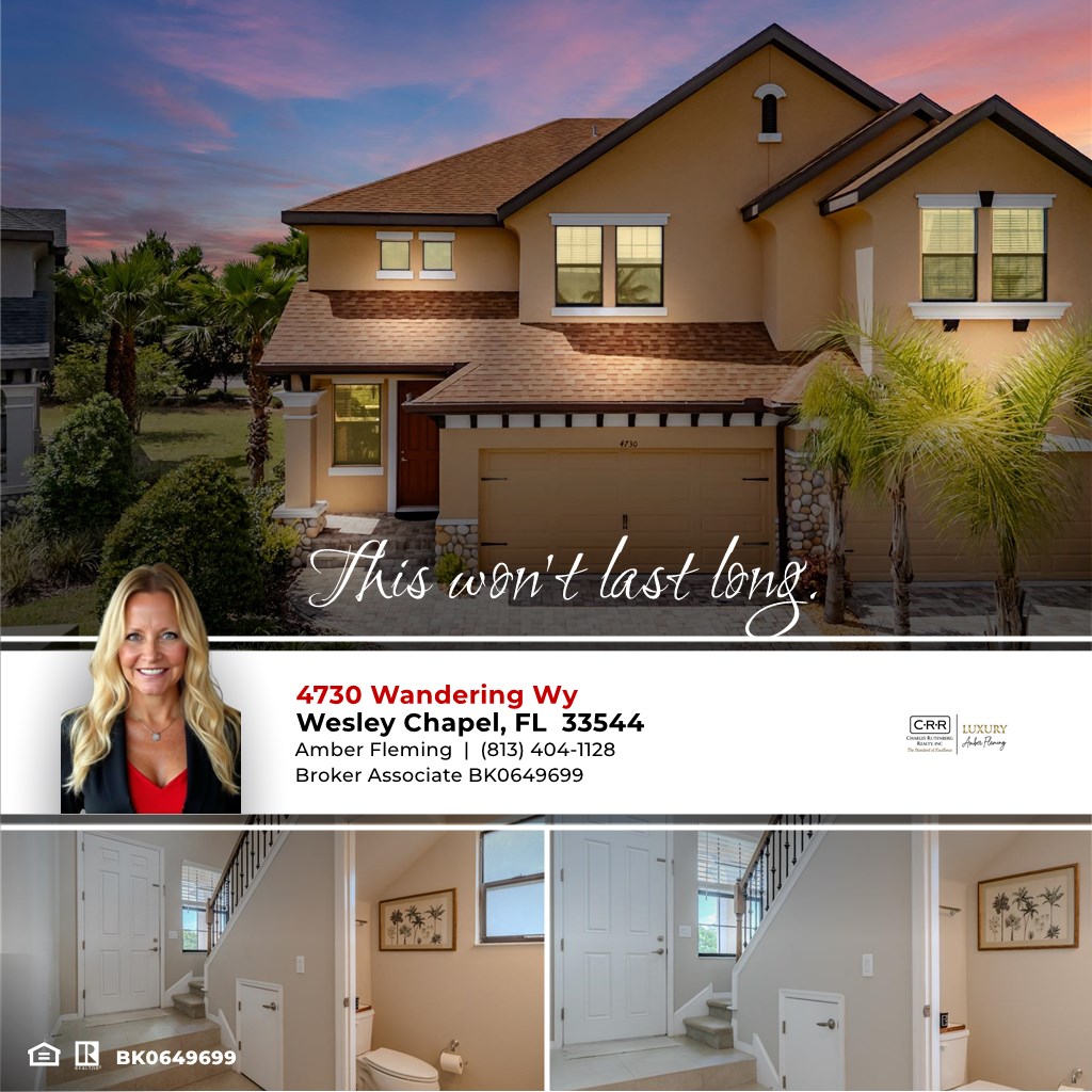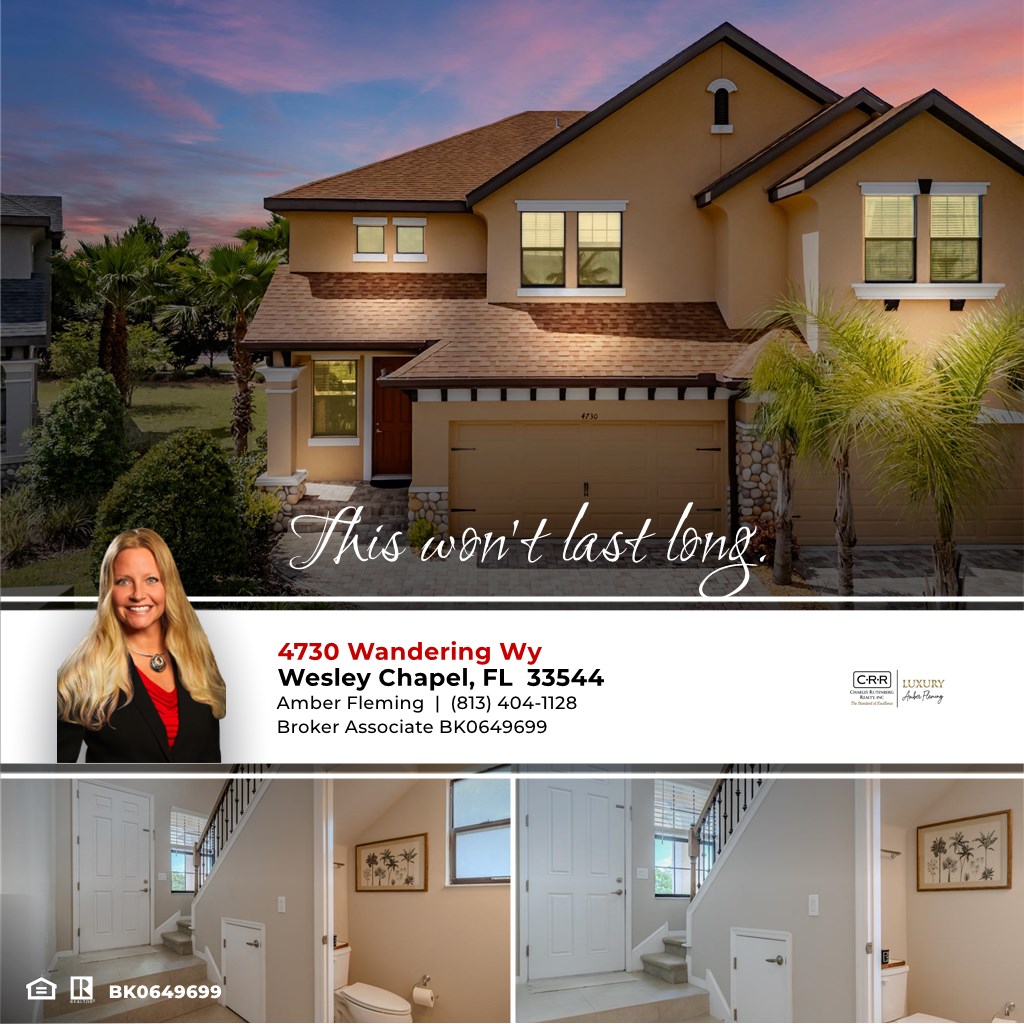 *****PRICE REDUCTION AND THE SELLER IS OFFERING 5K TOWARDS THE BUYERS CLOSING COSTS.*****This gorgeous open floor plan Maple Glen at Seven Oaks townhome in Wesley Chapel has amazing sunsets for you to come home to and enjoy on your screened patio off the living area OR your screened patio off your master bedroom!!. The "BELLA VISTA" Model townhome is Energy Star Qualified & in a gated community! Walking up to the townhome you will first see the paver driveway, decorative stone front and the adorable front porch that you can sit out and enjoy the Florida weather. When you walk in you will see the amazing foyer that has a beautiful chandelier and that opens up to the gorgeous wrought iron staircase that leads up to the 2nd floor. Walking down through the 1st floor there is a ½ bath(powder room) with pedestal sink, some storage under the stairway and then adjacent is a Flex area that can be used as a den, bonus, play area, etc that all leads into the large family room. The Flex/Den room has custom buiit-ins ready for your office space for those who work from home. The Kitchen, Breakfast Nook, and Dining Room are open to the Family Room with sliders that lead out to your covered and screened extended lanai. The kitchen has beautiful upgrades that include 42" cabinets w/ 3" crown molding, stainless steel appliances, center island, granite countertops, pendant lighting, closet pantry and an under-mount sink. Tall baseboards throughout and tile throughout the 1st floor. Walking upstairs you’ll find a large storage closet a guest bath and 2 nice sized additional bedrooms. The Primary suite features a very large walk-in closet, tray ceiling and a deluxe master bath with separate shower, dual vanities, garden tub and granite countertops. The master also has a covered and screened (15’ x 6”) verandah with another opportunity to enjoy the beautiful weather. Another bonus is this home has a EV ready Outlet in the garage and a water softener. This luxury townhome is move-in ready and ready for its new owner to enjoy the finer things in life! Community pools is steps away right across the street! This community offers a pool and cabana, two gazebos, dog park, BBQ area, and fire pit but with no CDD fees! Maple Glen at Seven Oaks is close to I-75 and centrally located near all the best shopping, malls, restaurants, entertainment & medical facilities that. New Microwave added! Water Heater and water Softener are less than 2 years old! Make your appointment today, this one won’t last long! Make sure to click on the virtual tour link for a walk-thru video!
