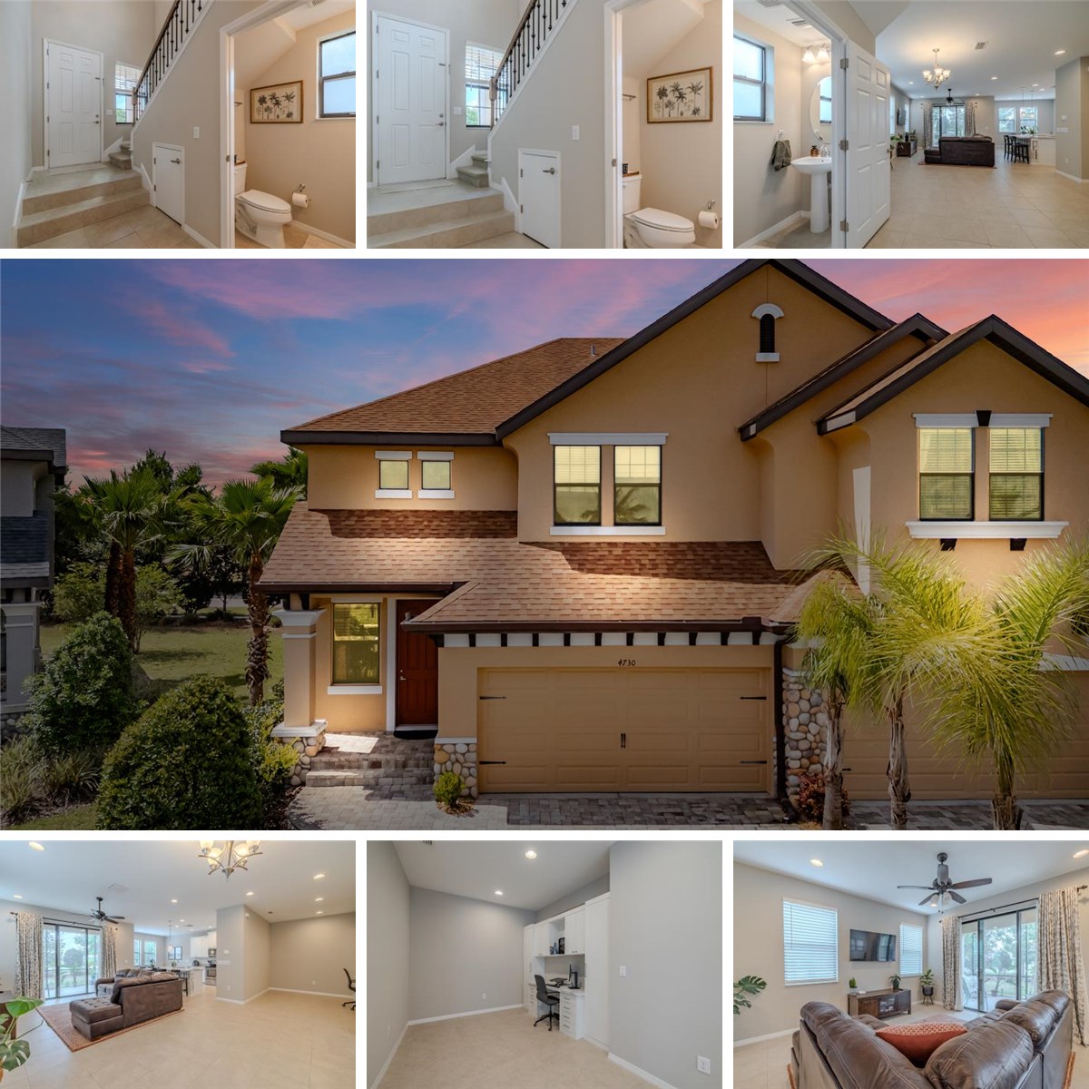*****PRICE REDUCTION AND THE SELLER IS OFFERING 5K TOWARDS THE BUYERS CLOSING COSTS.*****This gorgeous open floor plan Maple Glen at Seven Oaks townhome in Wesley Chapel has amazing sunsets for you to come home to and enjoy on your screened patio off the living area OR your screened patio off your master bedroom!!. The "BELLA VISTA" Model townhome is Energy Star Qualified & in a gated community! Walking up to the townhome you will first see the paver driveway, decorative stone front and the adorable front porch that you can sit out and enjoy the Florida weather. When you walk in you will see the amazing foyer that has a beautiful chandelier and that opens up to the gorgeous wrought iron staircase that leads up to the 2nd floor. Walking down through the 1st floor there is a ½ bath(powder room) with pedestal sink, some storage under the stairway and then adjacent is a Flex area that can be used as a den, bonus, play area, etc that all leads into the large family room. The Flex/Den room has custom buiit-ins ready for your office space for those who work from home. The Kitchen, Breakfast Nook, and Dining Room are open to the Family Room with sliders that lead out to your covered and screened extended lanai. The kitchen has beautiful upgrades that include 42" cabinets w/ 3" crown molding, stainless steel appliances, center island, granite countertops, pendant lighting, closet pantry and an under-mount sink. Tall baseboards throughout and tile throughout the 1st floor. Walking upstairs you’ll find a large storage closet a guest bath and 2 nice sized additional bedrooms. The Primary suite features a very large walk-in closet, tray ceiling and a deluxe master bath with separate shower, dual vanities, garden tub and granite countertops. The master also has a covered and screened (15’ x 6”) verandah with another opportunity to enjoy the beautiful weather. Another bonus is this home has a EV ready Outlet in the garage and a water softener. This luxury townhome is move-in ready and ready for its new owner to enjoy the finer things in life! Community pools is steps away right across the street! This community offers a pool and cabana, two gazebos, dog park, BBQ area, and fire pit but with no CDD fees! Maple Glen at Seven Oaks is close to I-75 and centrally located near all the best shopping, malls, restaurants, entertainment & medical facilities that. New Microwave added! Water Heater and water Softener are less than 2 years old! Make your appointment today, this one won’t last long! Make sure to click on the virtual tour link for a walk-thru video!