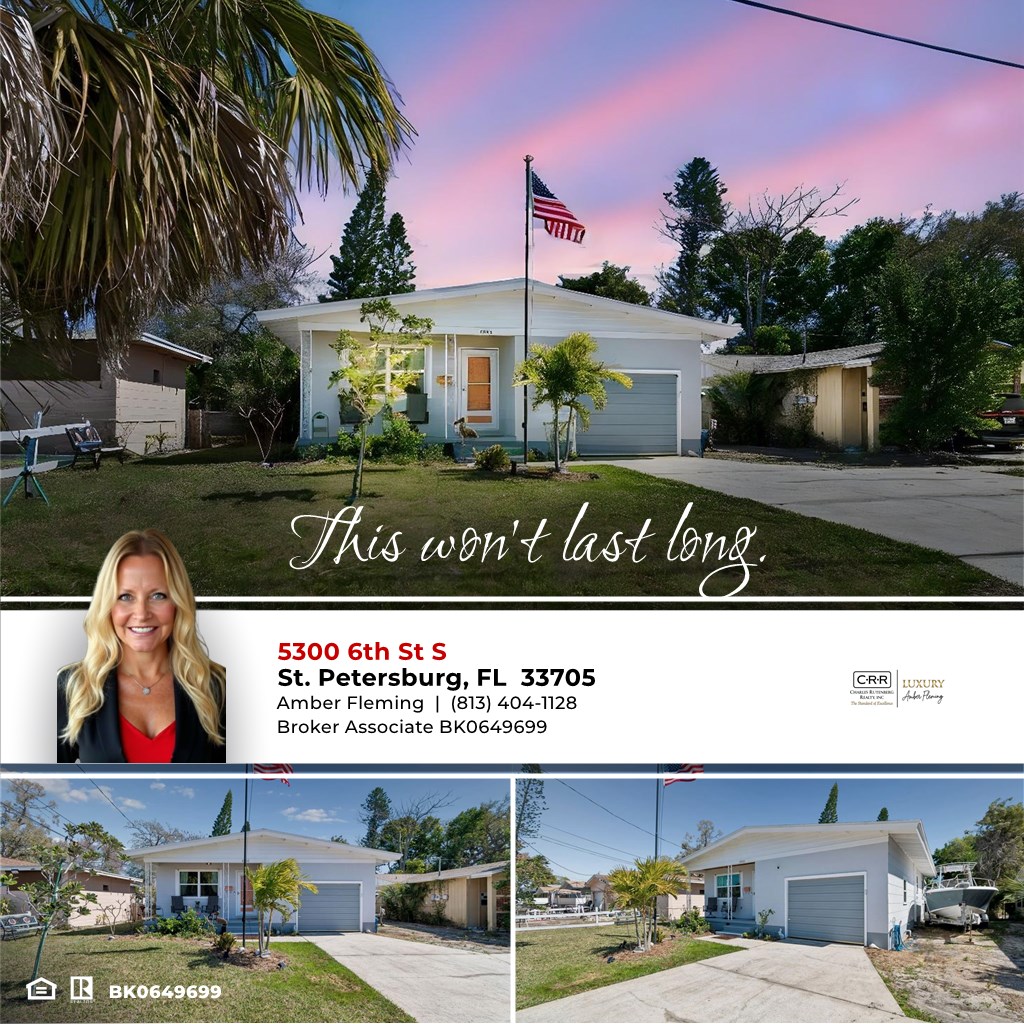 Welcome to this adorable and immaculate 2-bedroom, 1-bath home offering 1,104 square feet of light-filled living space in the highly desirable Bayou Heights neighborhood of St. Petersburg. From the charming front porch to the spacious backyard retreat, this home is the perfect blend of character, updates, and Florida lifestyle. Step inside to a bright, open floor plan with large windows (All Impact-Tinted, Insulated Double-Pane Windows (2022)) that flood the home with natural light. The kitchen has been beautifully updated with quartz countertops (2024), a farmhouse stainless sink, and new stainless steel refrigerator and dishwasher (2024). Overlooking the family and dining areas, it creates a seamless flow ideal for entertaining. Gorgeous original oak flooring enhances the living room, dining room and bedrooms, while durable plank tile flooring run throughout the kitchen and family room! Enjoy year-round indoor-outdoor living with a 10x12 screened and covered lanai just off the family room — perfect for morning coffee or relaxing evenings. The fully fenced large backyard is a true standout, featuring a unique pool (2’ underground / 2’ above ground) and an impressive 24’ x 30’ covered pole barn, ideal for grilling, entertaining, extra seating, storage, hobbies, or hosting unforgettable gatherings. Major updates provide peace of mind, including: New A/C (2025), New Water Heater (2025), All Impact-Tinted, Insulated Double-Pane Windows (2022), Freshly painted exterior, Security system with Ring camera, Fans in bedrooms, living & family rooms, Solar lease available if desired. With a 1-car garage, ample parking with room on the side to store your boat, and spotless move-in-ready condition, this home is perfect as a starter home, retirement retreat, or Florida vacation getaway. Located just minutes from vibrant downtown St. Petersburg, only 6 miles to the award-winning Gulf Beaches, and a short walk to Bay Vista Recreation Center, park, and public boat ramp, you’ll also enjoy easy access to the Skyway Bridge, I-275, US-19, shopping, schools, St. Pete Country Club, Boyd Hill Nature Preserve, USF, and area hospitals. This is Florida living at its best — unique, updated, and ready for its next owner. Make sure to view the Walk-thru video and landing Page for more views!