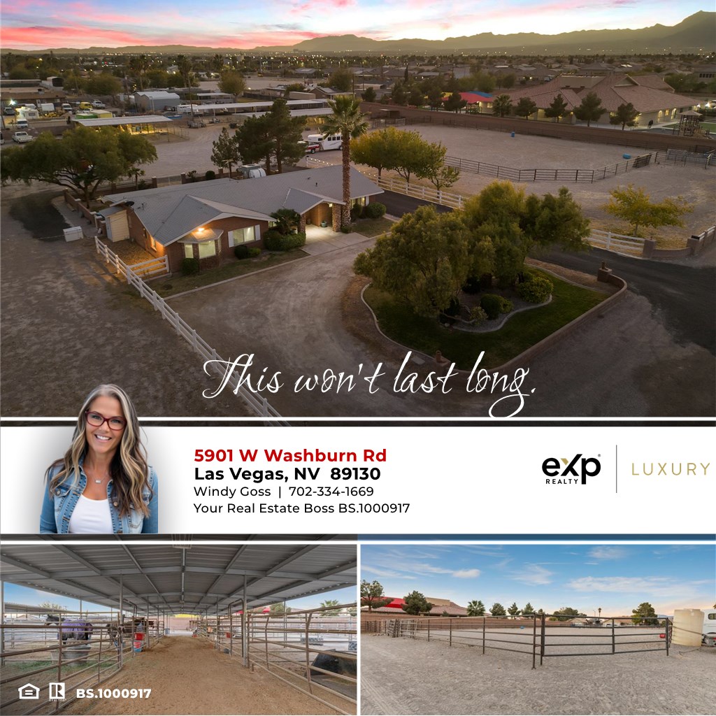 HORSE PROPERTY ALERT! Wait until you see this charming 3-bedroom, 2-bath ranch home in Las Vegas, where cowboy charm meets modern comfort. Nestled on 2.33 acres of prime horse property, this home is a dream for equestrian lovers. Featuring 16 horse stalls w/ runs. A Roping arena with excellent sand footing, cattle lead-up, roping chute, wide alleyway, & a shaded cattle-pen w/ automatic water. This property is designed for the serious horse enthusiast. Enjoy the convenience of a large-tack area in the barn w/ several saddle racks & bridle hangers for all your riding needs. Refrigeration for your cold beverages along w/ a hitching rail, wash area w/ several water sources, plus plenty of space for RV & horse trailer parking. The outbuilding, equipped with power & AC, offers versatile use as an office, storage, store or more, including an 8x8 TUFF shed. Whether you want to raise your kids on a ranch, use it as income property, board horses & make 6K a month, this home is perfect for you!